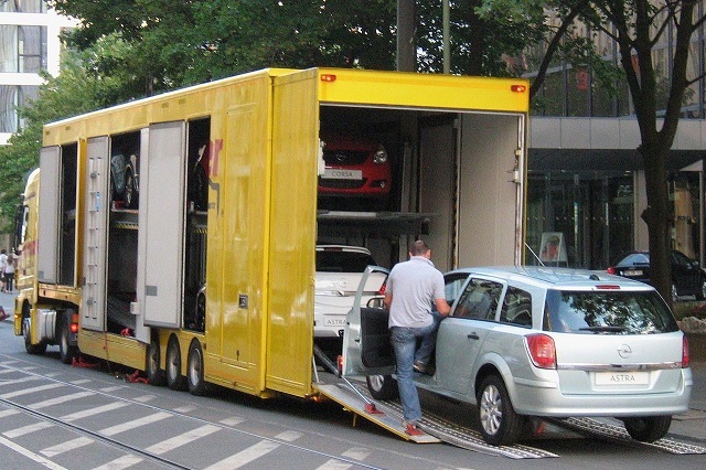 An enclosed auto transport truck features a fully enclosed trailer. It has a roof and four sides and it provides a safe and secure environment for your vehicle while it is in transport.